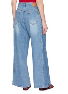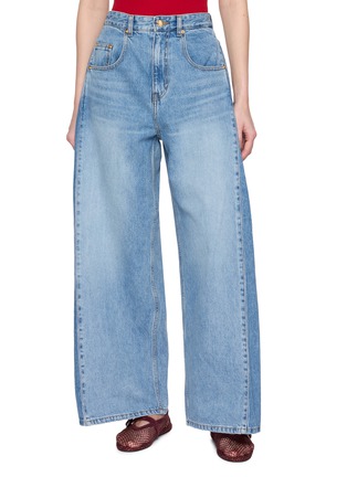 Rendered in a timeless blue wash, these classic wide leg jeans from EENK reinterpret everyday denim with sculptural ease. The elongated silhouette flows from a clean mid rise waist, while gold toned rivets lend subtle polish. Style with a fitted knit or crisp shirt for refined contrast.