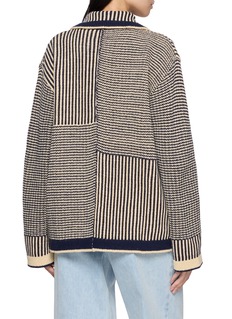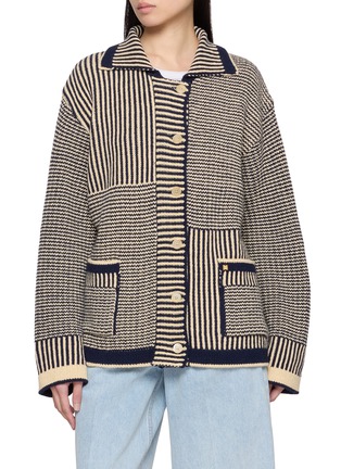 这款针织开衫以对比条纹与拼接纹理演绎 EENK 叙事美学,既具几何张力又暗藏怀旧情怀。混纺纱线赋予温暖质感与层次深度,宽松廓形可随性叠搭牛仔或挺括衬衫,成就考究日常造型。