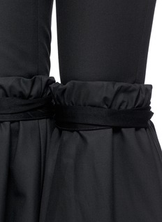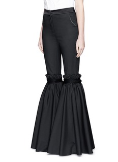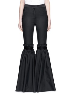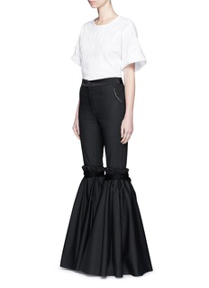 Ellery 2016春夏从艺术家Christo和Jeanne-Claude的作品中汲取灵感,强调服饰的体积感。这款裤子采用近年大热的喇叭裤款式,外层附可拆卸的系带松紧喇叭半裤腿,进一步加强长裤丰盈的轮廓,令穿着效果更富层次和动感。褪去半裤腿则是较为轻盈的喇叭裤,展现您简约摩登的姿态。建议搭配品牌同款西服外套,无论是休闲或派对,都助您打造抢眼夺目的时尚造型。