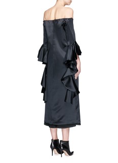 这款Ellery的上衣以光滑的缎面面料制成,大热的露肩设计展现迷人的双肩及锁骨线条,袖口连接垂坠荷叶边装饰,随着您的举手投足而摆动,散发优雅气息,长款剪裁结合正面开衩设计,是打造层次造型的理想之选。