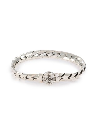 Emanuele Bicocchi 珠宝兼具随性优雅及华丽摇滚,即时为你的着装添上独特亮点。这款手链采用纯银人字链,配有刻有 Emanuele Bicocchi 标志的盒式搭扣,为手腕处巧添一抹质感。