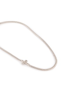 This Emanuele Bicocchi necklace, featuring a slender sterling silver chain and subtly placed cross pendant, embodies minimalist elegance. The fine craftsmanship is evident in the smooth finish and precise detailing of the cross, making it a perfect piece for understated, stylish expression.