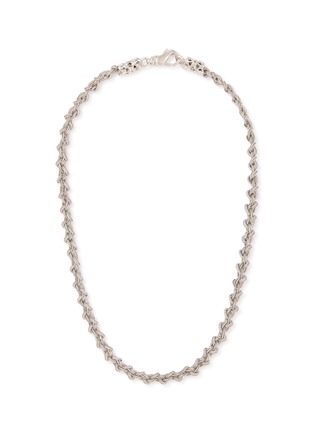 This meticulously crafted Emanuele Bicocchi necklace exudes a rugged elegance with its intricate, twisted sterling silver chain. Designed to captivate, it features a unique, textured pattern that reflects light beautifully, enhancing its visual appeal. The secure clasp is adorned with delicate filigree detailing, underscoring the artisan's attention to detail.