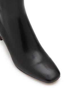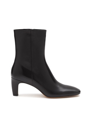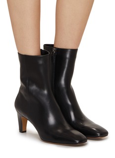 EQUIL 之名引申自“中庸之道”(Equilibrium)一词,品牌注重服装用料,以精美细节及历久弥新的品质见称。这款短靴精选质感真皮勾勒优雅方头,高跟设计更添摩登美感。