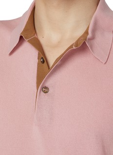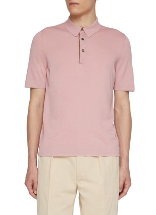 Equil reimagines the essential polo in a dusty rose hue, softly elevated by a tonal contrast placket and lustrous brown buttons. A refined take on summer staples—pair it with tailored neutrals for artful everyday sophistication.
