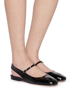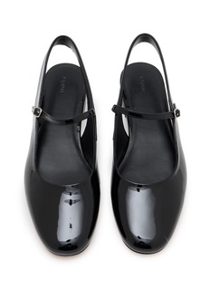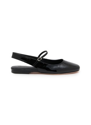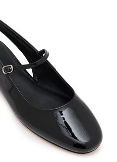 EQUIL之名引申自“中庸之道”(Equilibrium)一词,品牌注重服装用料的可持续性和质感。这款平底鞋采用亮面漆皮面料剪裁,以后绕踝剪裁和扣带设计带来都市低调复古格调。