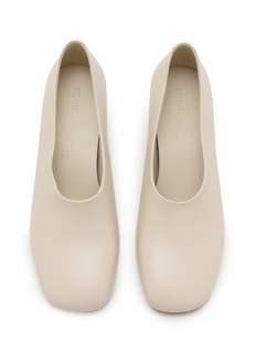 EQUIL之名引申自“中庸之道”(Equilibrium)一词,品牌注重服装用料的可持续性和质感。这款高跟鞋采用质感皮革面料剪裁,微妙的方头线条和一体式设计带来都市低调复古格调。