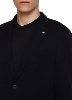 EQUIL's blazer combines effortless sophistication with contemporary comfort. Crafted in a sleek black hue, it features a structured silhouette and notched lapels for a refined, versatile look. Perfect for elevating both casual and formal ensembles.