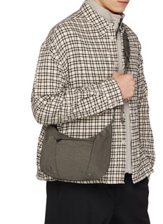 This slouchy pouch bag reflects F/CE.'s utility-driven ethos with a curved silhouette, drawstring closure, and front zip pocket for accessible storage. The adjustable webbing strap with gathered detailing ensures ergonomic comfort during urban exploration. A tactical essential that merges outdoor functionality with contemporary minimalism.