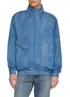 FDMTL's heritage-inspired track jacket features an all-over distressed finish with textured striping and relaxed oversized proportions. The full-zip silhouette includes dual side pockets and elasticated cuffs for vintage athletic appeal. A distinctive layering essential that transforms casual sportswear through Japanese textile innovation and artisanal treatment.