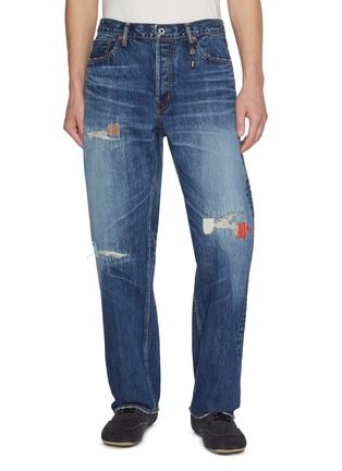 FDMTL's straight-leg jeans feature subtle boro repairs and vintage distressing across a relaxed silhouette. Strategic patches and understated sashiko stitching accent the authentically worn finish. Classic heritage denim refined through Japanese repair techniques for effortless everyday style.