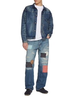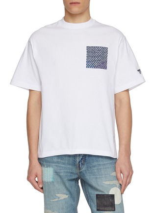 FDMTL's essential T-shirt showcases a sashiko-patterned chest pocket with signature craftsmanship and discreet sleeve branding. The relaxed, oversized silhouette delivers contemporary comfort with authentic Japanese textile detailing. A refined wardrobe staple that brings artisanal character to everyday dressing.