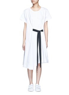 FFIXXED STUDIOS这款连衣裙采用清新简约的白色作主调,没有花巧细节,简单以黑色腰带点亮整体造型,散发时尚休闲魅力。不修边设计透出随性感觉,搭配今季大热的白色球鞋,便是街头流行的个性造型。