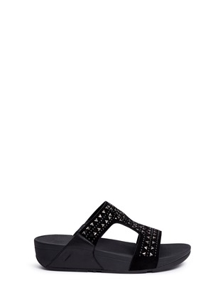 凉鞋品牌FitFlop将科技与休闲相结合,打造能够塑身保健的鞋履。这款露趾凉鞋的工字搭带处缀有整齐排列的三角镂空、三角和圆形暗银色铆钉,散发异域民族格调。鞋底由专业医疗学者和鞋类工业设计师共同研制,贴合脚掌线条的鞋床令您穿着舒适,兼具功能性与时尚感。