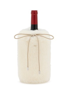 This luxurious shearling wine cooler is designed to keep your bottle chilled in elegant style. The plush white shearling exterior, tied with a bow, adds a touch of sophistication and warmth to any celebration.