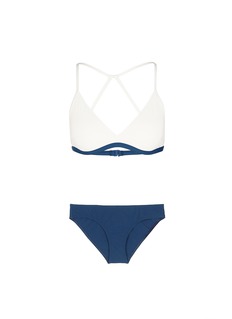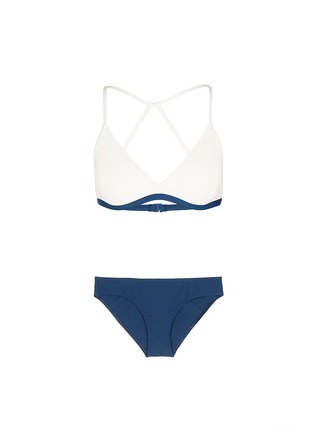 Flatpole Swim这款泳衣套装以鲜明的蓝白拼色设计引人注目,款式简约,不同身型的女生均可轻松驾驭,突显您健康性感一面,在沙滩展现优雅美态。