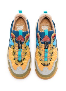 Adventure meets style with these FLOWER MOUNTAIN sneakers, designed to support both rigorous outdoor activities and daily urban wear. Featuring a waterproof construction and a vibrant check pattern in shades of blue, yellow, and green, these sneakers are as practical as they are eye-catching. The robust rubber sole is speckled for an added touch of flair, ensuring durability and grip on varied terrains.