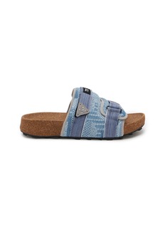 Step into comfort and style with Flower Mountain's unique sandals. These sandals feature a distinctive blue denim-inspired fabric upper that adds a casual, chic touch to your everyday look. The adjustable straps ensure a perfect fit, while the cork footbed offers supreme comfort and support for all-day wear. Accented with a playful, embellished patch, these sandals blend functionality with a trendy aesthetic, making them ideal for those who appreciate footwear that is both stylish and practical.