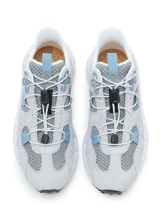 The FLOWER MOUNTAIN sneakers blend timeless style with modern functionality. Featuring a cool grey and ice blue color scheme, these sneakers are crafted from high-quality suede and mesh for breathability and comfort. The innovative design includes adjustable toggle laces for a secure fit and a speckled sole that adds a touch of uniqueness while providing excellent traction.