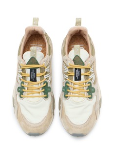 Embrace the outdoors with these FLOWER MOUNTAIN sneakers, expertly blending style and functionality. Constructed from a durable mix of suede and canvas, these shoes feature a unique color palette of earthy tones accented by vibrant yellow laces. The floral motif perforations add a subtle charm, while the robust rubber sole offers enhanced grip and comfort for all-day wear.