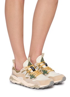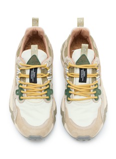 Delve into the earthy elegance of these FLOWER MOUNTAIN sneakers, designed for both comfort and style. The neutral color palette is accented by subtle pops of green and mustard, creating a versatile look that complements any outfit. Crafted with premium suede and breathable mesh, these sneakers offer durability and all-day comfort. The robust speckled soles provide excellent traction, making them ideal for varied terrains.