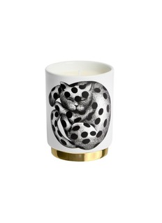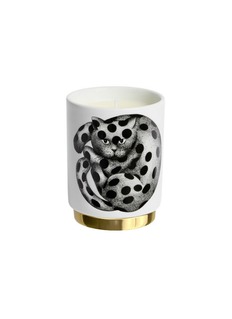 The High Fidelity decoration is part of a group of designs from the 1950s. Cats are among Piero Fornasetti's favourite animals, and this hand-decorated porcelain scented candle with gold accents renders a moment of quotidian pleasure iconic.