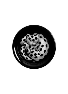 Elevate your drinking experience with this exquisite iron tray from Piero Fornasetti's High Fidelity collection. Inspired by the 1950s, this hand-decorated piece features a charming cat motif, reflecting Fornasetti's fondness for these graceful creatures. Perfect for making everyday moments truly special.