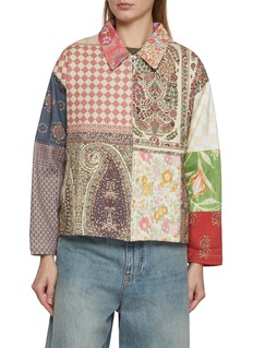 Drawing from the rich artistry of South Asian textiles, this jacket from FOUND showcases an intricate tapestry-inspired print across a lightweight cotton twill base. Its boxy, slightly cropped cut and vintage wash evoke the texture and warmth of heirloom fabrics reimagined for contemporary wear.