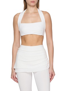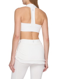 A sculptural take on active essentials, this FP Movement sports bra frames the body with a bold square neckline and elegant halter straps. Its smooth, supportive stretch fabrication offers light-to-medium hold, while the open back enhances airflow and fluidity. Perfect for pilates, stretching sessions, or pairing with high-rise leggings for a sleek, feminine studio look.