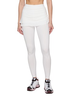 These FP Movement leggings reinterpret studio essentials with a fresh, luminous energy. The high-rise, sculpting silhouette is paired with a soft wrap skirt overlay that moves fluidly, offering airy coverage and a feminine layered effect. Ideal for pilates, stretching sessions, or brightening everyday athleisure with its clean, tonal finish.