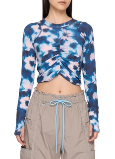 This cropped top by FP Movement makes a bold statement in a vibrant tie-dye design. The body-skimming fit features eye-catching ruched centre-front detailing that cinches the fabric for flattering dimension and a peek of midriff. Crafted from stretchy, moisture-wicking performance fabric with four-way stretch, the playful silhouette allows you to transitions effortlessly from studio to street.