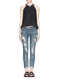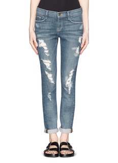 作为时尚界的新宠儿,Frame Denim自品牌推出以来,迅速成为名人女星钟爱的混搭品。这款Le Garcon相对紧身裤型更忠于穿着者的身材,自然简约的水洗效果加上磨烂破洞,令每条牛仔裤均独一无二,让您全然释放颓废不羁的野性魅力。