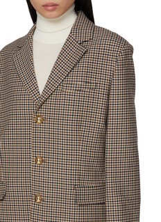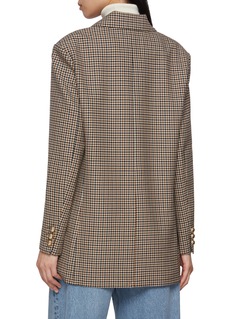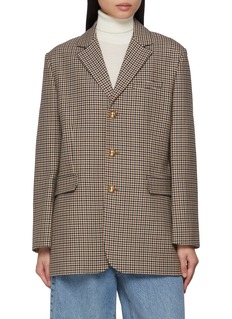 Rendered in a classic houndstooth check, this oversized FRAME blazer strikes a balance between timeless tailoring and contemporary ease. Detailed with polished gold dome buttons and structured shoulders, it layers effortlessly over turtlenecks or denim for elevated everyday styling.