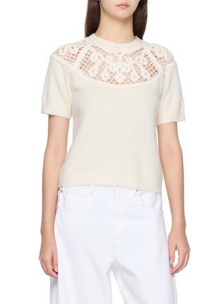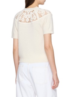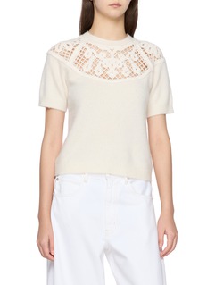 FRAME 融汇了洛杉矶的牛仔服饰传统和伦敦的前卫风尚。这款蕾丝褶皱针织衫采用刷毛羊绒精制而成,领口与褶皱短袖饰以精致蕾丝细节,将柔软质感与女性优雅气质巧妙融合。