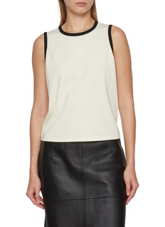 FRAME distills vintage athletic codes into a modern essential with this sleeveless ringer top. Defined by its contrast trim and clean silhouette, it offers an easy balance of sporty edge and minimalist refinement—perfect for layering or wearing solo on sunlit days.