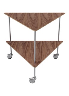 A mobile side table design with a sophisticated, architectural edge. Arne Jacobsen originally designed this elegant trolley for his tea. It has now been revived from the Fritz Hansen archive to serve as a bar cart, serving trolley or side table. This is a truly versatile and storied design.