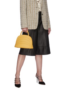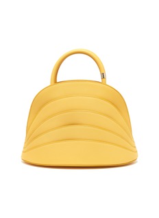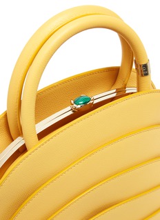 Gabo Guzzo将艺术带入生活,致力于融合科学、技术与意大利手工艺,打造出一系列时尚单品。这款手提包采用富有质感的小牛皮打造而成,层叠设计则颇具几何美感,包口处的孔雀石为4-5月的生日石,也意为转型之石,带来治愈效果及正面转变的寓意之余亦可对抗辐射。黄色调感觉活泼亮丽,为你的摩登造型注入个性化色彩。