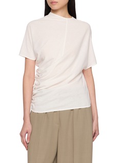 Embrace versatility and innovation with GIA STUDIO's T-shirt. This unique piece combines the timeless appeal of a crewneck T-shirt with a twisted design. Perfect as a standalone piece in your casual outfits, this piece can be paired with tailored pants, jeans, or a skirt.