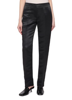 GIA STUDIOS 创立于 2018 年,“Gia” 在越南文中意为 “the house”,是当地工匠展现当代艺术的基地。这款长裤以深邃的面料为特色,面料泛着微妙的光泽,裤脚处的双褶设计突显了裤型轮廓。
