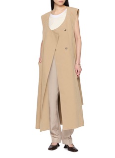 GIA STUDIOS 创立于 2018 年,“Gia” 在越南文中意为 “the house”,是当地工匠展现当代艺术的基地。"Tilda"大衣将风衣重新塑造成无袖、修长的版型,配以 U 形领口和柔和勾勒的腰线,穿着轻盈舒适。