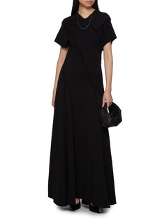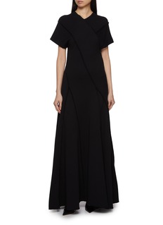 The Windsor dress by GIA STUDIOS offers sculptural poise through architectural construction. Crafted from a cotton-wool blend, it features diagonal seamlines that contour the body and a fluid asymmetric hem. A modern classic for evenings defined by quiet confidence and movement.