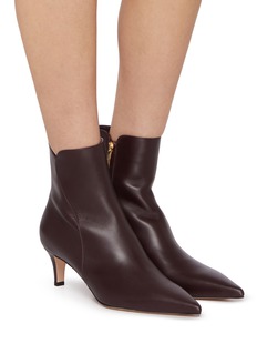 Gianvito Rossi 这款短靴以光滑皮革精致打造,尖头设计融入轻盈细跟,展现品牌高雅线条与女性力量美学。