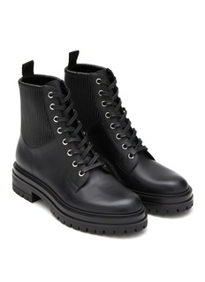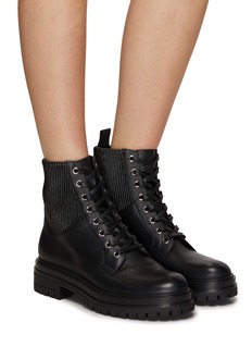 Gianvito Rossi 这款皮靴以脚踝处可收缩的牛皮纹路带来设计巧思,增加肌理的同时舒适你的着感,底部层次设计更修饰腿部线条,绑带设计增添精致酷感。