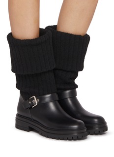 Gianvito Rossi 这款切尔西靴由采用针织设计巧搭经典皮革制成,设有可调节扣带,圆头设计气质百搭。让你的整套穿搭巧露时髦创意。