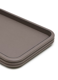 This line was inspired by the 'stacked' design often seen at the base of some buildings in Italy, as well as Salvatore Ferragamo's celebrated heel. This collection has an identical recurring motif, layered and highlighted by deliberately knick legs, that lends a delicate graphic line.