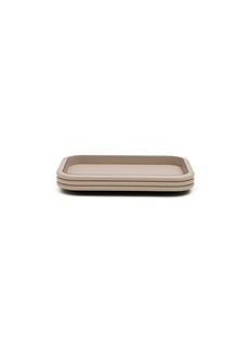 This line was inspired by the 'stacked' design often seen at the base of some buildings in Italy, as well as Salvatore Ferragamo's celebrated heel. This collection has an identical recurring motif, layered and highlighted by deliberately knick legs, that lends a delicate graphic line.
