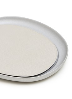 Combining sculptural form with modern utility, this tray is crafted in sandblasted aluminum with a removable leather inlay, each tray is finished with a non-slip waterproof rubber base for effortless functionality. At once practical and artful, this tray embodies Kelly Wearstler's bold design language and Giobagnara's commitment to refined craftsmanship.