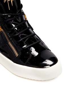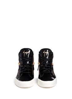 朱塞佩萨诺第新季这款中筒运动鞋以低调设计展示品牌的摇滚叛逆风格。黑色漆皮与金色拉链细节散发独一无二的华丽气息,让您轻松打造前卫不造作的时尚造型。