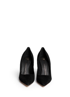 朱塞佩萨诺第璀璨耀眼的鞋履设计深入人心,新季这款高跟鞋的尖头廓形流畅利落,黑色麂皮与闪烁的金色细跟成了鲜明对比,鞋跟缀满夺目的施华洛世奇仿水晶,更显奢华高贵。