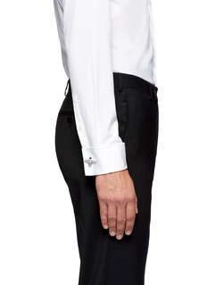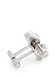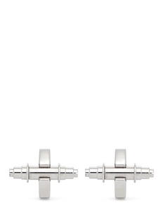 纪梵希的设计标志Obsedia因着独特的十字形而极具辨识度,并被设计师广泛运用在包袋及配饰的设计中,这款个性袖扣以亮眼银色金属打造,精巧前卫,给正装造型添加了朋克酷感细节。